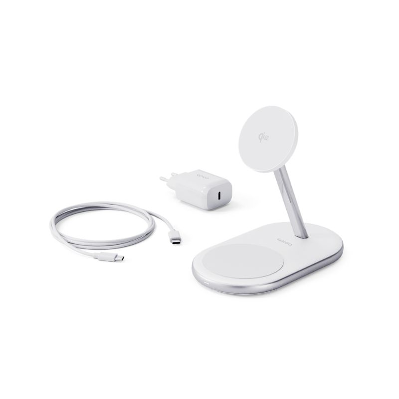 Epico UltraBase Qi2 2in1 Mag+ bezdrátový nabíjecí stojánek EX40 | bílá | 25W adaptér a USB-C kabel v balení