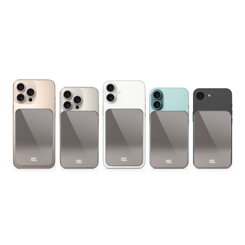 Powerbanka 5 000 mAh (19,25 Wh), bezdrátová s podporou MagSafe, vstup/výstup USB-C (20W max.), skleněná záda, skrytý displej (indikátor kapacity), USB-C na USB-C kabel součástí balení