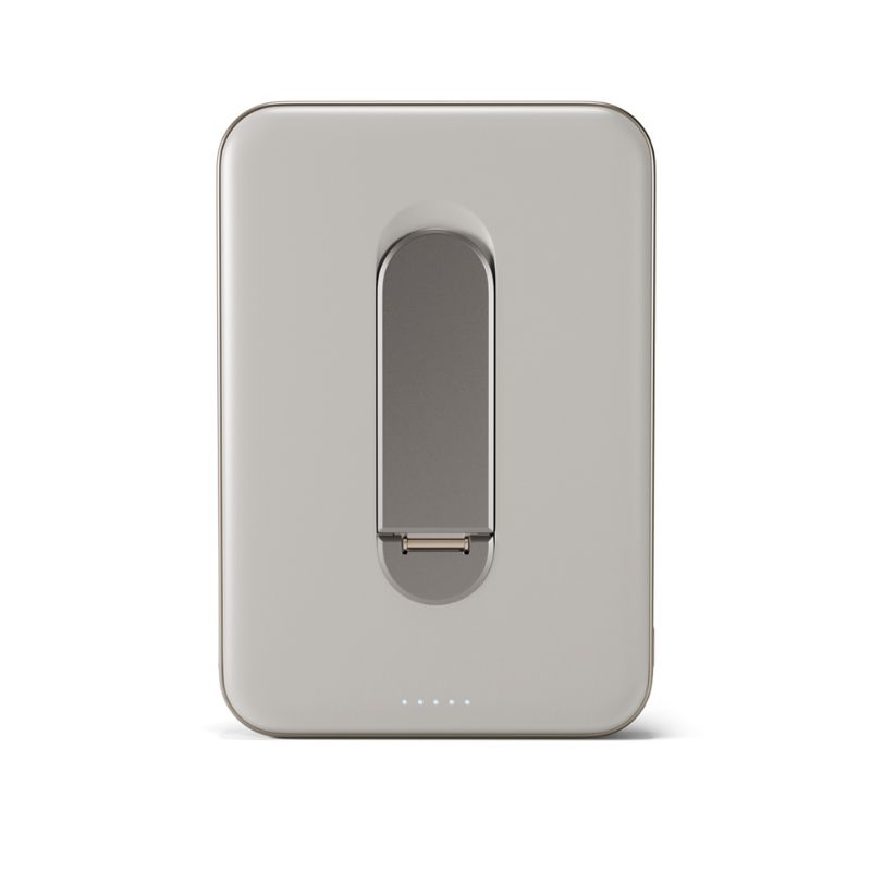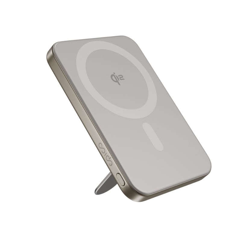 Qi2 powerbanka pro mobilní telefony, bezdrátová, MagSafe kompatibilní, kapacita 5000 mAh, skládací stojánek, bezdrátový výstup 15W pro iPhone i Android, USB-C výstup 20W, USB-C na USB-C kabel součástí balení