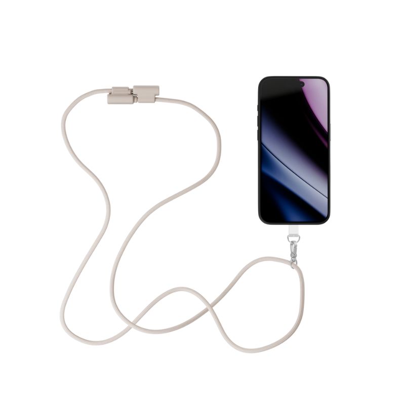 Epico Phone Lanyard with USB-C to USB-C Cable | Beige | Durable Metal Carabiner