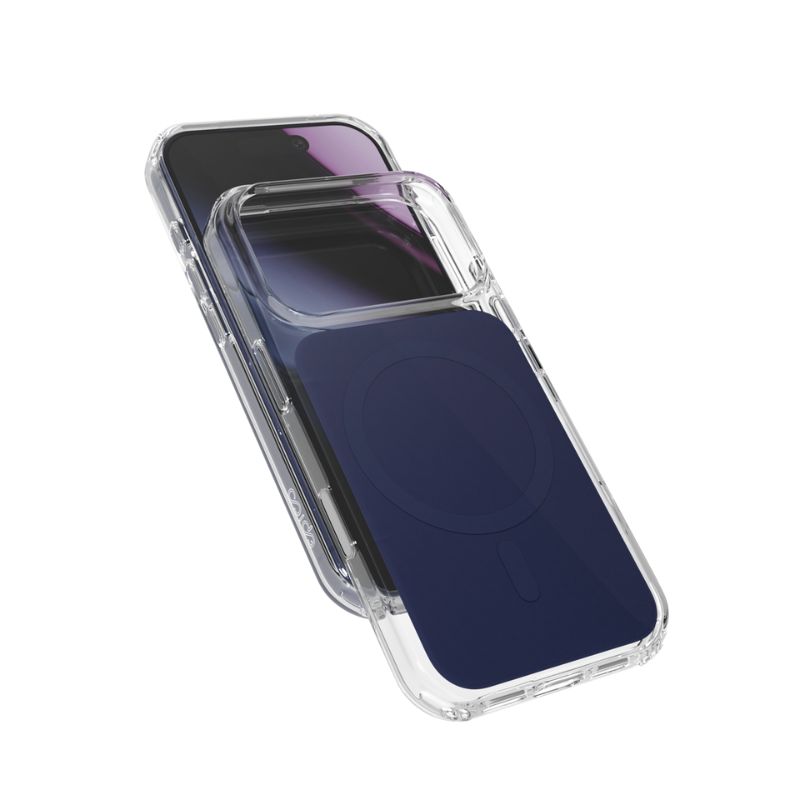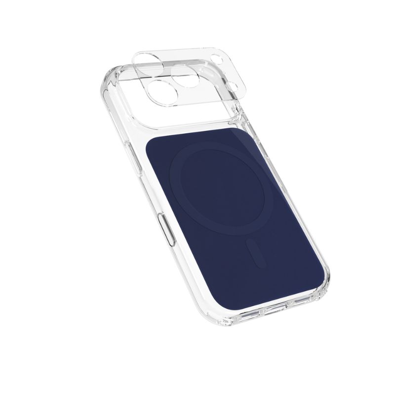 Protective case - Apple iPhone 17 Pro Max, transparent, compatible with Qi2 and MagSafe, raised edges for display protection, anti-yellowing properties, protective frame for the camera module included, dark blue colour