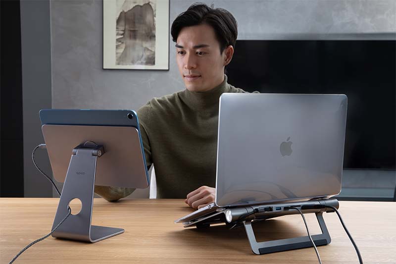 Magnetický stojánek pro Apple iPad Pro 12,9”, iPad Air 13”, magnetické uchycení, možnost nastavení polohy, materiál hliník, barva vesmírně šedá