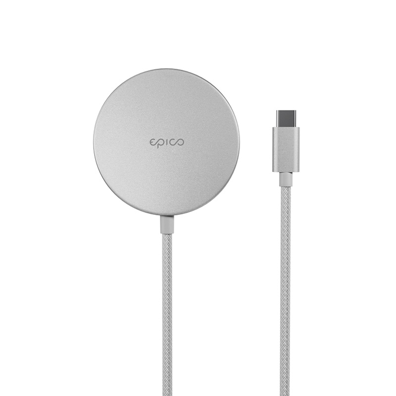 Epico Qi2 Mag+ Charging Pad with integrated cable offers the perfect solution for fast charging your iPhone or any Qi2-compatible device with up to 15W of power. The Qi2-certified charger with a strong magnet ensures a secure and precise attachment, allowing easy manipulation without interrupting the charging process. With a premium aluminium body, this charger is the ultimate accessory for use at home, in the office or on the go. It includes a 1.2m USB-C cable that is extra durable thanks to its fabric braid. The power adapter is not included.Input voltage/current: DC 5V/3A, 9V/2.22A, Wireless output power: 7.5W/10W/15W, Cable length: 1.2m, Material: aluminium, fabric braiding, Dimensions: 60×10mm, Weight: 67g