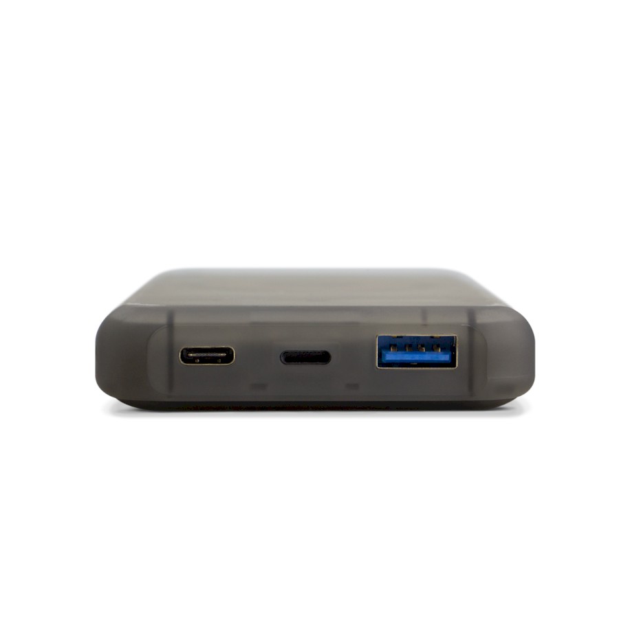 Compact size wireless powerbank equipped with type-C PD charging port (up to 18W), USB-A Fast Charge port (up to 18W) and Qi wireless charging pad supporting 10W & 7.5W wireless fast charging. 10 000 mAh capacity is sufficient for multiplne recharging of your mobile device, and portable size plus low weight of 219g make this power bank easy to carry on your adventures.