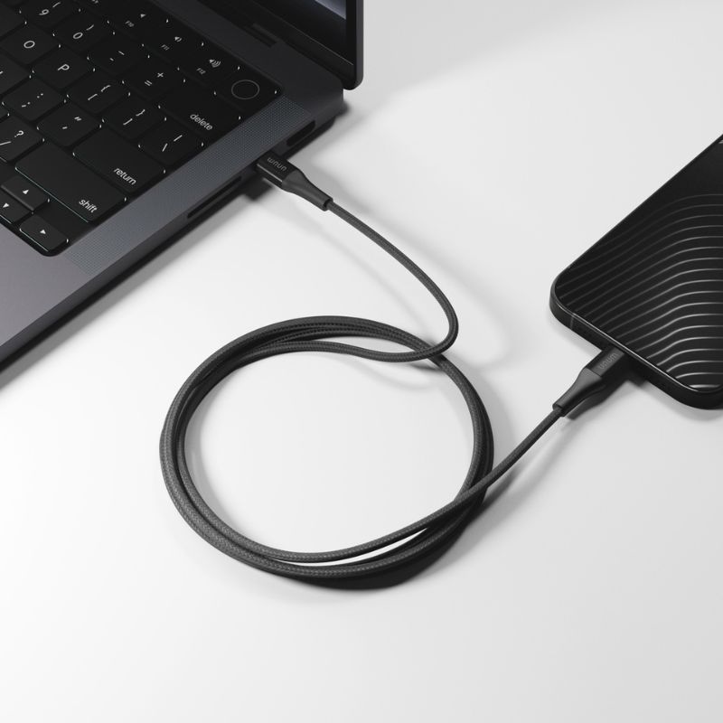 Pravé aramidové vlákno pro maximální odolnostPrémiový kabel UNUM Aramid je vyroben z pravého aramidového vlákna, které zajišťuje mimořádnou pevnost a odolnost. Na rozdíl od běžných kabelů, které kombinují aramid s nylonem, tento využívá 100% aramidu, takže spolehlivě odolá mechanickému namáhání i náročnému každodennímu používání.Ultrarychlé nabíjení a přenos dat v prémiovém designuPodpora nabíjení až 240 W zaručuje ultrarychlé a efektivní napájení chytrých telefonů, tabletů, sluchátek, herních konzolí i notebooků – vždy s kompatibilní nabíječkou. Kabel navíc podporuje přenos dat rychlostí až 480 Mb/s a je vybaven univerzálními USB-C konektory pro širokou kompatibilitu napříč zařízeními. Díky délce 1,2 m se pohodlně používá doma, v kanceláři i na cestách, zatímco praktické poutko na suchý zip udrží kabel vždy úhledně stočený a snadno přenosný na cestách.