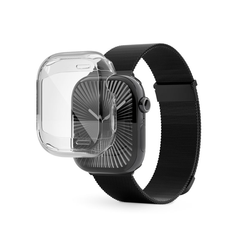 Ochranný kryt na hodinky Apple Watch Series 10 42mm, na boční strany a displej, barva: transparentní, materiál: TPU + PC