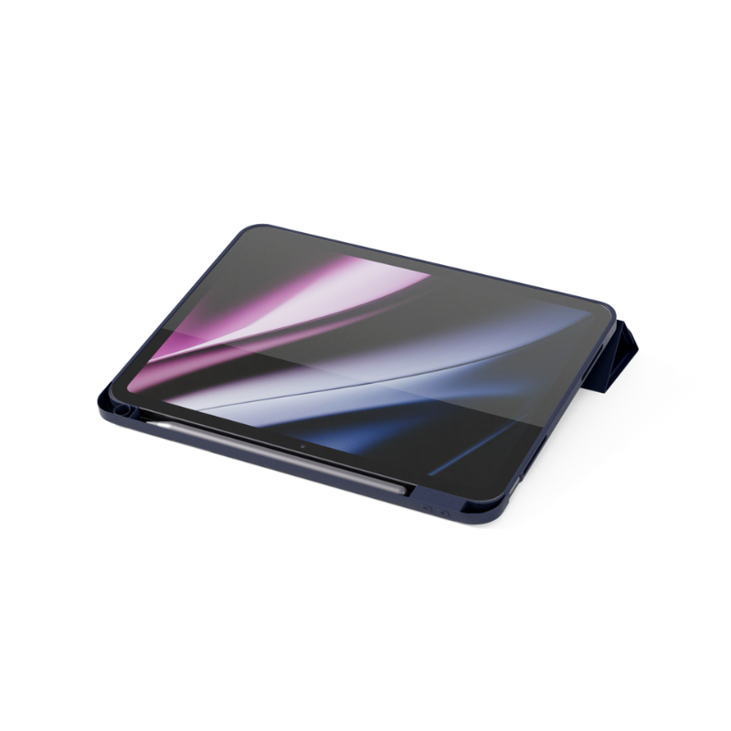 Pouzdro na tablet Apple iPad Pro 11”, iPad Air 10,9”, iPad Air 11”, zavírací, ochrana displeje proti poškrábání, integrovaný stojánek, zavírání na magnet, výřezy pro konektory a tlačítka, slot na stylus, barva modrá