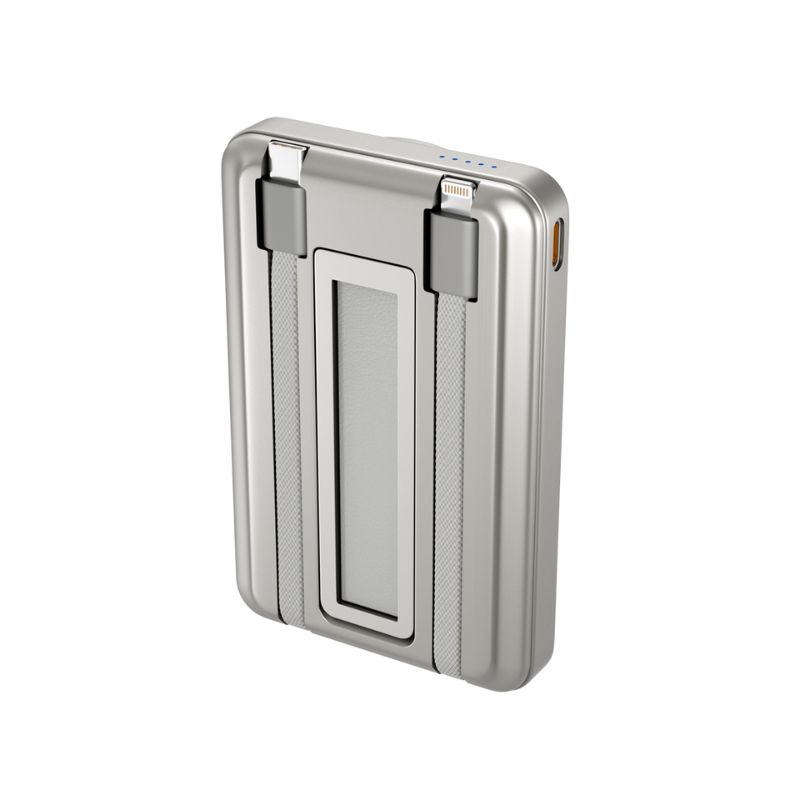 Jedna powerbanka, čtyři způsoby nabíjeníNabíjej telefon, Apple Watch, AirPods (nebo jiná sluchátka s bezdrátovým nabíjením) a další zařízení současně – bez zbytečných kabelů navíc. iPhone nebo jiný kompatibilní telefon stačí jednoduše přicvaknout k powerbance díky kompatibilitě s MagSafe a okamžitě nabíjíš bezdrátově s výkonem až 15 W (7,5 W pro iPhone). Apple Watch dobiješ na stejné ploše jako svůj telefon a bezdrátové nabíjení se postará i o rychlé dobití tvých sluchátek. Součástí powerbanky jsou také integrované opletené kabely USB-C a Lightning, takže máš vždy po ruce ten správný konektor.Kompaktní energie na cestyVestavěný stojánek ti dovolí pohodlně sledovat videa – ať už na výšku, nebo na šířku. Na výběr máš hned čtyři různé způsoby výstupu – USB-C, kabel Lightning, kabel USB-C i bezdrátovou plochu. USB-C port a kabel zajistí výkon až 20 W pro rychlé nabíjení, zatímco Lightning kabel poskytne výkon 12 W. Powerbanka má kapacitu 10 000 mAh, je tenká, lehká a snadno se vejde do každé tašky. Díky LED indikátoru navíc získáš perfektní přehled o zbývající kapacitě. Součástí balení je 0,3m USB-C na USB-C kabel, takže powerbanku můžeš začít používat hned po rozbalení.