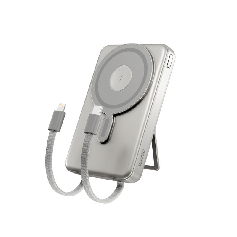 Spello ForcePack 4v1 10000mAh magnetická bezdrátová powerbanka SM75 | titanová | Qi2 & MagSafe kompatibilní