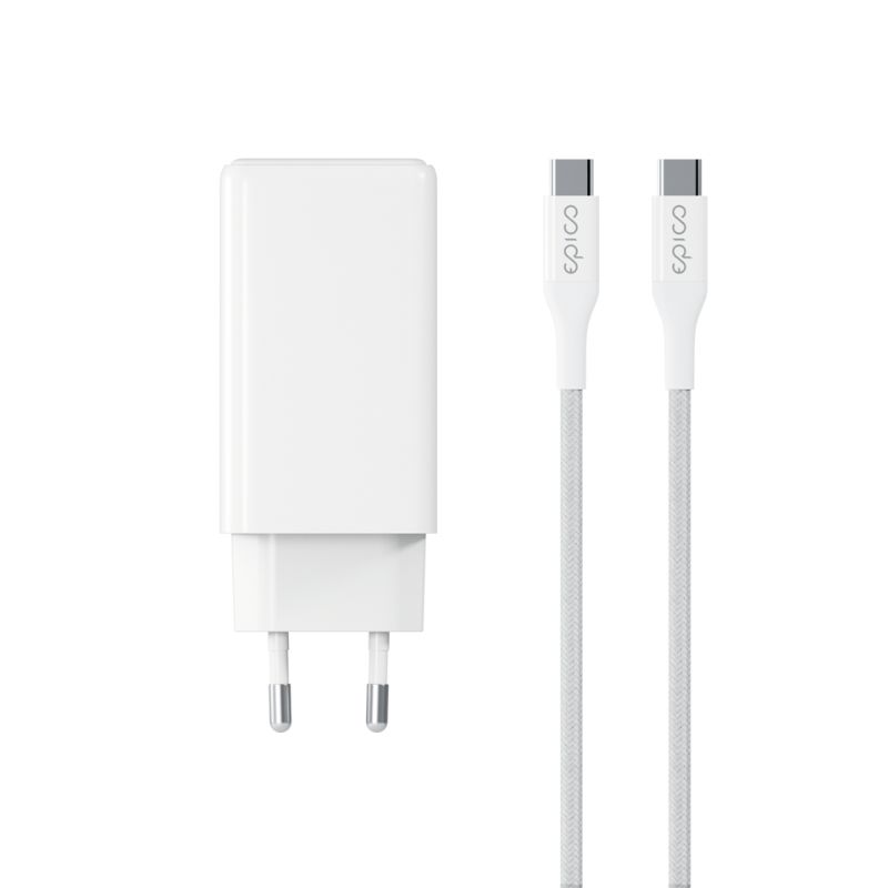 1x Epico 100W Charger, 1x Epico USB-C to USB-C 1.2m Cable - white, 1x návod |